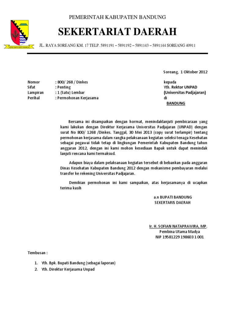 Contoh Surat Permohonan Kerjasama Ruang Sipil
